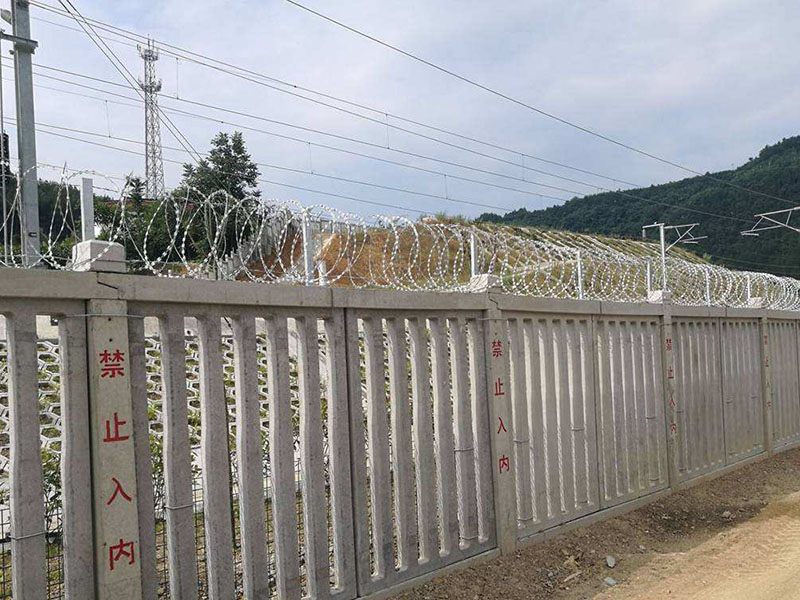 產品材質及工藝:內部采用HPB300冷拔低碳鋼絲與Q235矩管邊框;焊接完畢后,表面采用整體熱鍍鋅后浸塑處理,浸塑粉末一般采用墨綠、表面光滑、平整、日久抗腐蝕、抗紫外線的特性。鐵路防護柵欄是鐵路的安全設施安裝工程,主要應用在鐵路軌道兩側,用來防止來往的行人接近軌道及來往的火車,以保證行人的人身安全。因此,鐵路防護柵欄無論在技術上還是在質量上都比其他隔離柵要求更加嚴格。鐵路防護柵欄采用立柱混凝土澆筑件,工程造價低,強度高,整體穩(wěn)定性好,適合大面積采用。